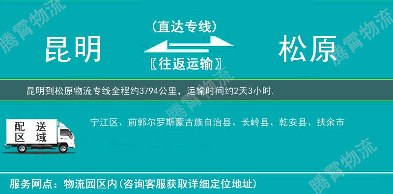 歡迎來電咨詢昆明到松原物流專線相關(guān)信息,天天發(fā)貨,全程3-7天可將您的貨物送至松原全市:乾安縣、前郭爾羅斯蒙古族自治縣、長嶺縣、扶余市、寧江區(qū)、。